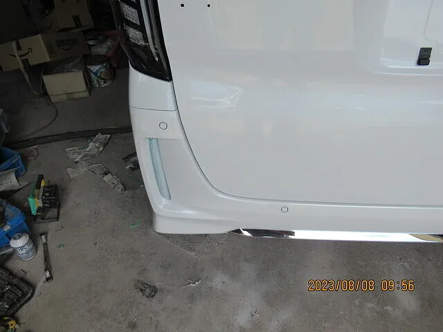 何とかポコポコに成らない様に板金できました。リヤバンパーは予算の関係で、外さないで修理しました 出来上がりの写真を撮り忘れましたので、完成写真が無いのが残念ですがお渡しする時には、綺麗になって喜んで頂きました